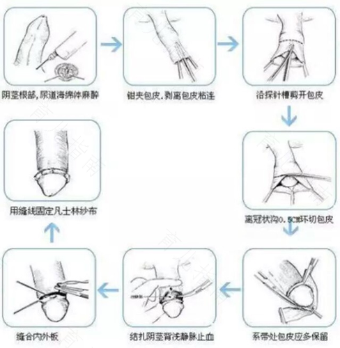 对于包皮环切手术,属于男性科常规小手术,所以男性不用过于紧张。一般手术步骤是在局部麻醉下进行,将包皮进行切除之后,再将包皮内外板对接缝合。手术过程大约在20~30分钟左右,并且不需要住院,一般手术危险性较小,较少出现意外情况。