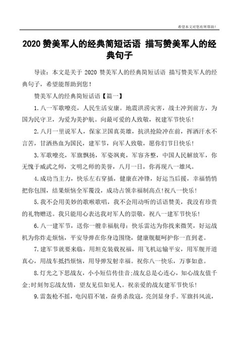 赞美军人的简短文案 一