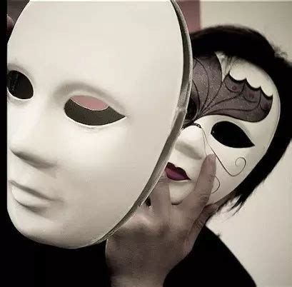 11、我们戴久了面具,等摘下面具时却发现,我们的脸早就跟面具一样了。