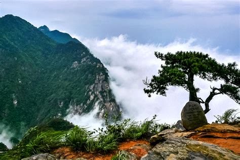 7、龙首岩拔地千尺,危峰兀立,怪石磷峋,一块巨崖直立,另一块横断其上,直插天池山腰,势如苍龙昂首,气势非凡。