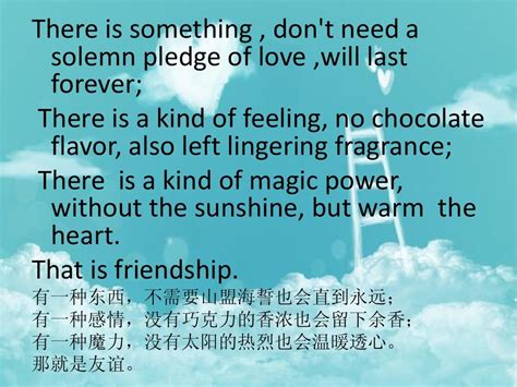 16、真正的朋友,不一定要锦上添花,但要雪中送炭。真正的朋友,是至简至真的,越平淡越纯,越真诚越久!