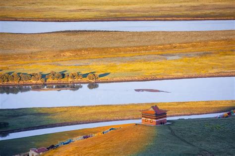 10、 登上山头,向下眺望,眼前是一片金色,若是仔细观察,便看到金黄中夹带着一片片红、一片片绿的。红的得像玛瑙,绿得像翡翠。还有山下那水平如镜的池塘,倒映着眼前的美景,格外的好看。