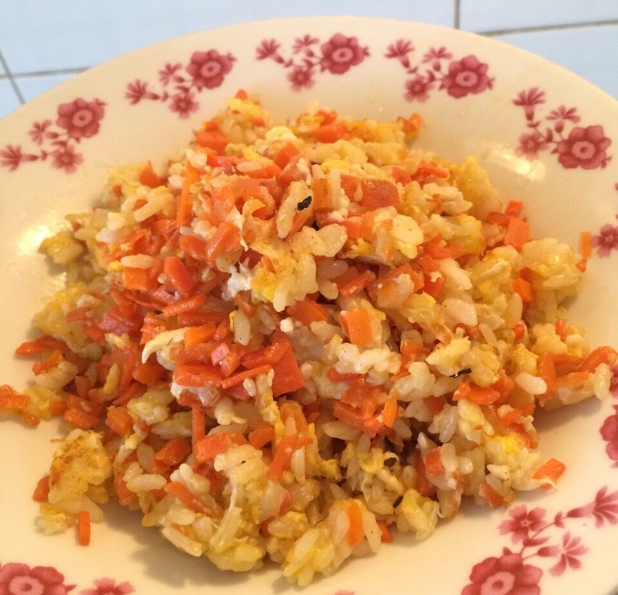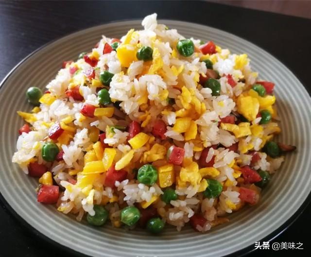 1 此炒饭肉、蛋、蔬菜齐全,颜色搭配靓丽!是对付挑食小朋友的绝招
