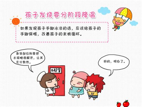 02 宝宝发烧如何正确应对?当家中的宝宝出现发烧时,家长不要给孩子增温,而是要把孩子的衣服略微解开,使其充分散热,并注意室内空气保持流动,但要注意宝宝手脚的保暖。