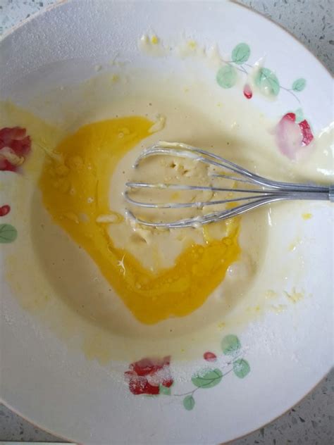 4、再倒入玉米油,搅拌均匀,糊状成酸奶状!