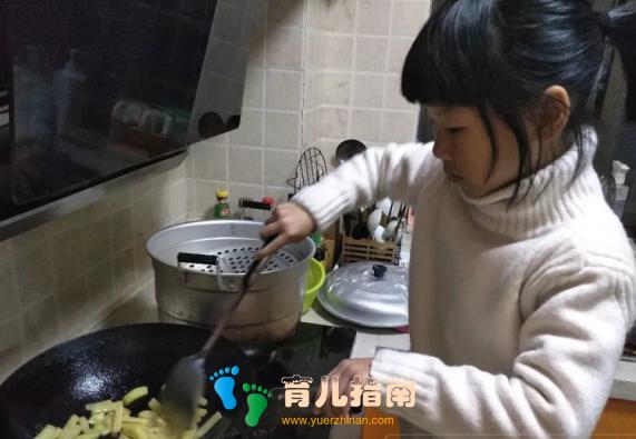 幼小懂事的孩子主动提出路过菜市场顺便买菜,后来又逐渐学会了做饭。