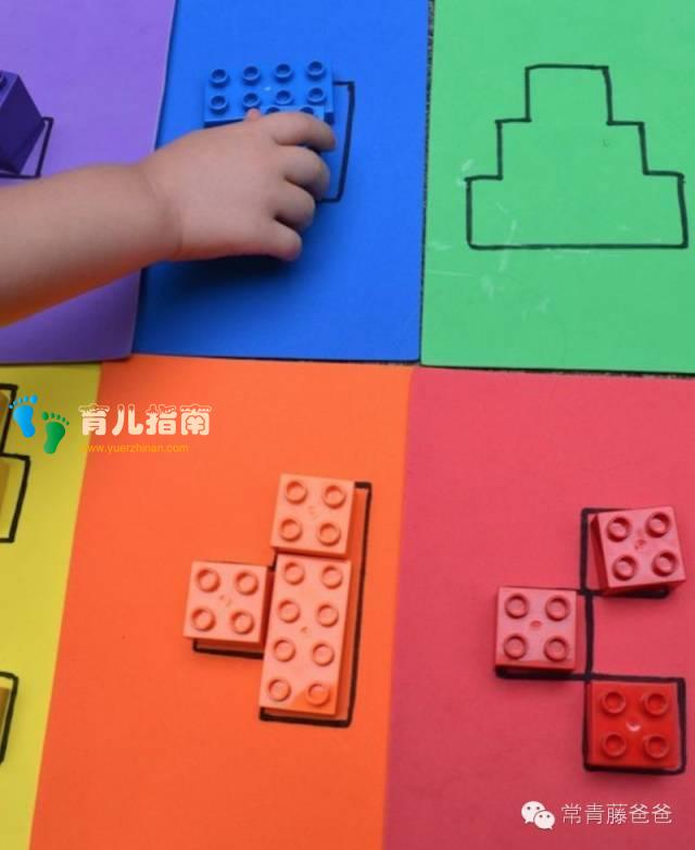 这就是小马君上一篇专栏所说的Sturctured Play”(有结构的游戏)。成人可以预设好形状的外框,至于孩子如何组建,完全看他们自己。他们可以选择用长方形或者正方形的乐高积木来填满边框。其中也隐藏着简单的数字替换逻辑,比如一个长方形可以替换两个正方形。当然这里不需要孩子真正理解这些,而是从玩的过程中意识到不同的数字组成以及具体的大小填充。