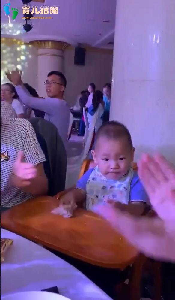 宝宝婚宴上忘情啃猪蹄,看到周围人在鼓掌,宝宝有眼色地放下猪蹄一起鼓掌