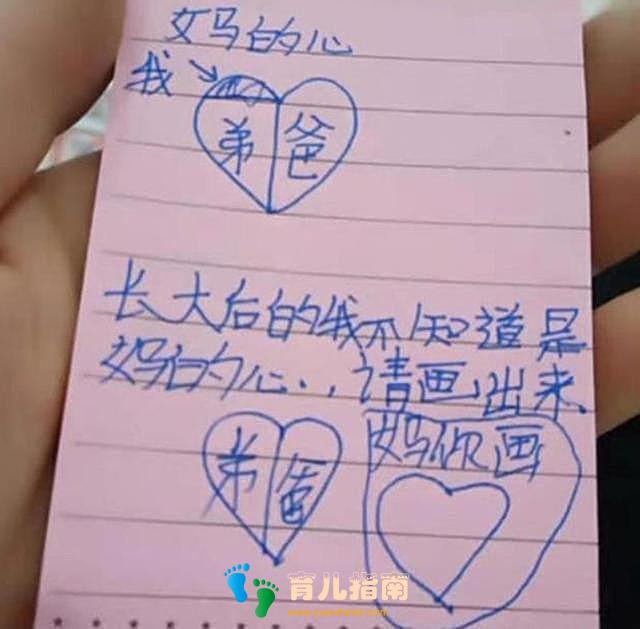 大宝的日记上画了一颗爱心,上面写着妈的心”分成三部分,一半写着爸”,另一半写着弟”和我”这个我”指的是大宝,在妈妈心上的位置只有小小的一点。小陈沉默了,原来孩子的心中是这样想的,难道是因为自己平时对两个孩子太不公平 ?