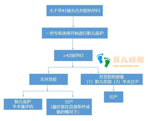 美国妇产科医师学会推荐的过期妊娠的评估和处理方案见下图。