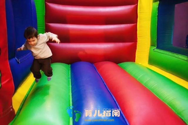 玩几回后,家长只需要把孩子放在滑梯上面,然后一人在滑梯下面接应,一人在滑梯旁保护,让孩子自己滑下来。