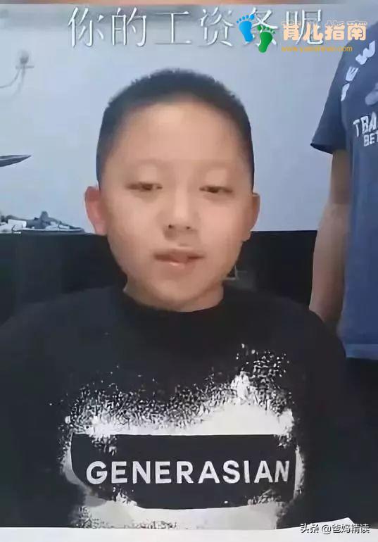 视频中,小男孩翻着白眼模仿着妈妈的样子:爸爸回来了,我跟你说件事,今天2号,你的工资条呢?还没发?”