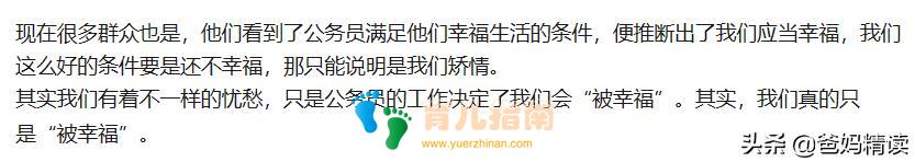 他还呼吁:其实每个岗位都是有喜有忧的,不要只看优点,就以偏盖全,认为所有的公务员都应该被幸福”。
