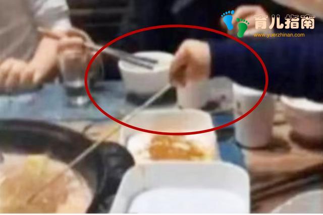 妈妈见自己的话不管用,就用手里的筷子沾了几滴火锅里的热水,然后就在孩子的手背上点了几下。