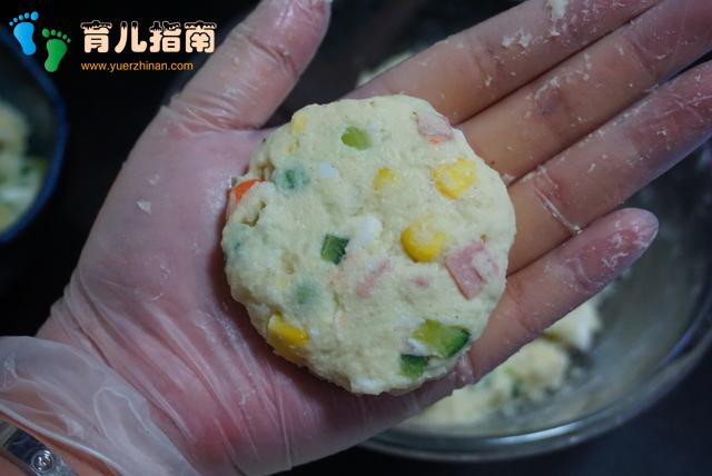 4.我们可以按自己的喜好做成适中的圆饼或者使用模具做成心形,三角形,正方形等。宝宝小,不爱吃饭,妈妈们就可以用心将食物,做成孩子喜欢的造型,这样就更可以引起孩子想吃它的欲望。
