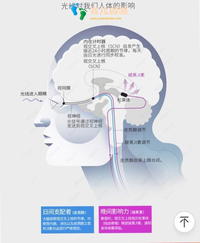 我们每个人的体内都有一个内在节律,叫做生物钟,是位于大脑中央的两个细小神经结构,叫做视交叉上核(SCN),它是我们日常睡眠和清醒的调节器,即使不用闹钟,我们也会在早上的某个固定的时间点醒来,在晚上的某个固定的时间点犯困想要睡觉,白天的时候,生物钟会使我们保持工作/学习的清醒模式”,夜晚的时候,生物钟会让我们进入睡眠的休息模式”。