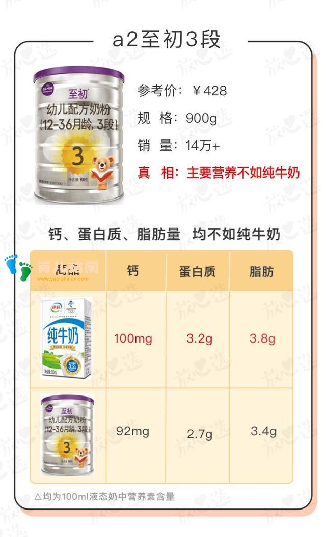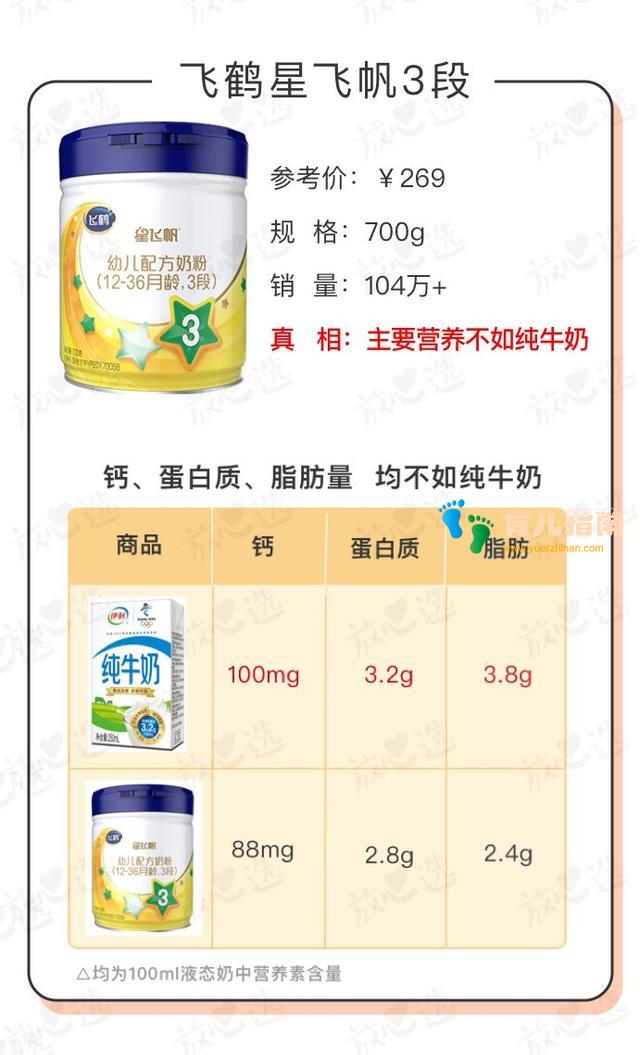 妈妈们可能会说了,虽然钙、蛋白质、脂肪含量不如纯牛奶,可3段配方奶粉强化了其他营养素,也不值得喝吗?