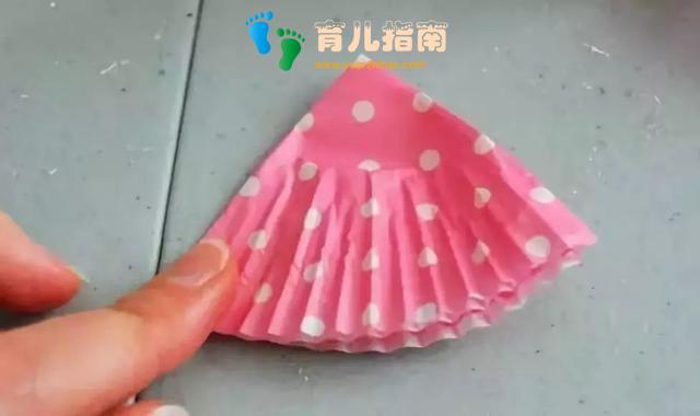然后准备蛋糕托,将蛋糕托折叠两次;