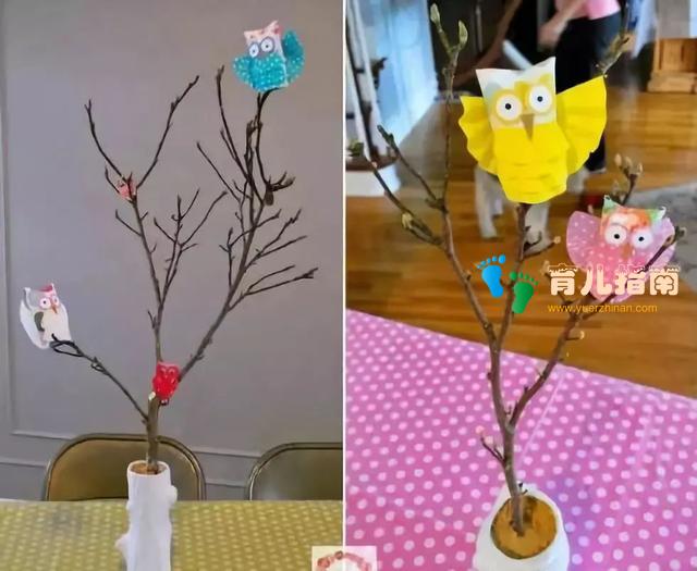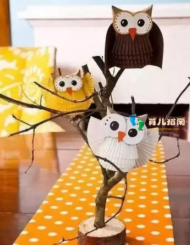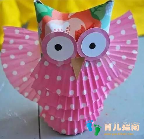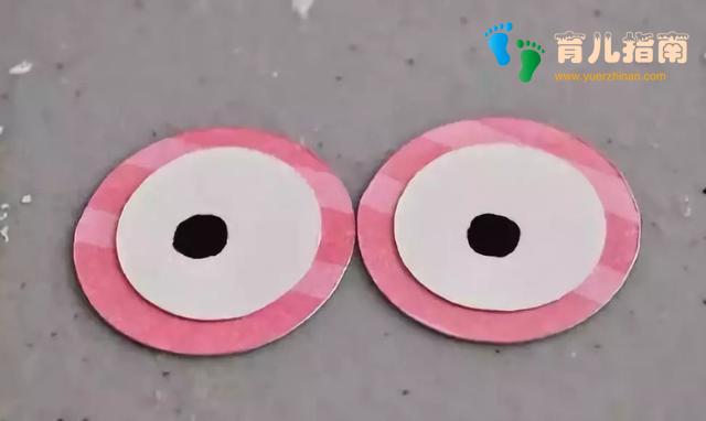 最后准备猫头鹰的眼睛,两层的卡纸粘贴在一起,然后粘贴在纸筒上;