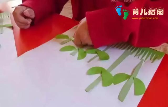 然后剪出叶子,叶茎,都粘贴在画纸上;