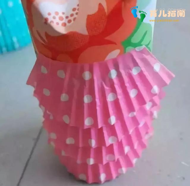 蛋糕托剪掉头部,剪出很多一样的!然后就可以粘贴在纸筒上了!