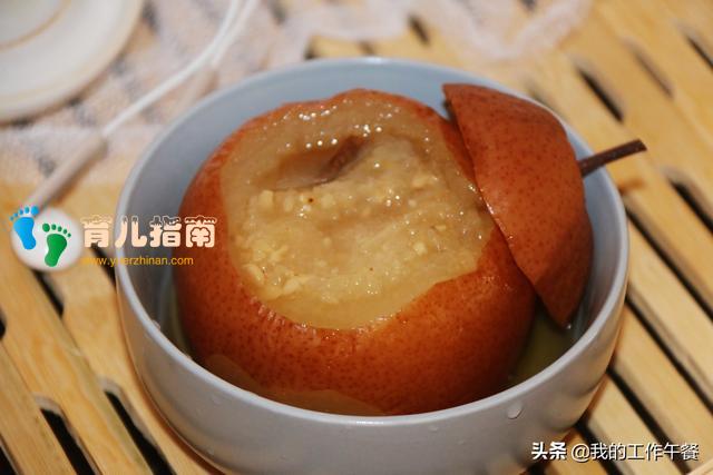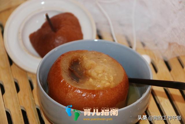 用勺子把雪梨汁沥出,盛进杯子中,喜欢吃雪梨的小伙伴们,也可以让他把炖过的梨肉吃掉,效果很不错,见效快。