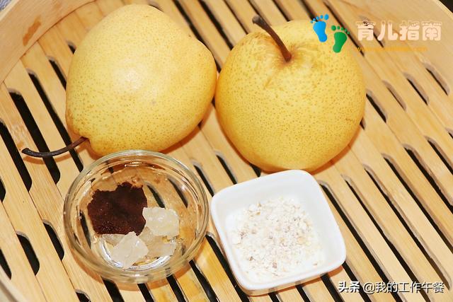 食材:雪梨2个 、川贝粉8克(川贝磨成粉状)、陈皮6克,冰糖适量