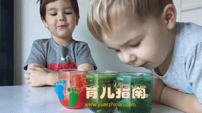 (密度不一样,所以会一层油一层水),滴入颜料。
