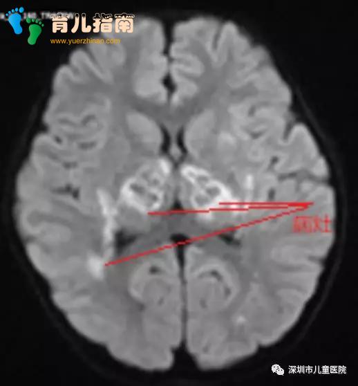 通过检查发现这孩子的头颅CT是一个明显的多发病灶,我们考虑孩子是一个甲流病毒引起的急性坏死性脑病。急性坏死性脑病是儿童在甲流里经常会碰到的并发症,孩子很快会出现意识障碍,严重的甚至会出现脑损伤。