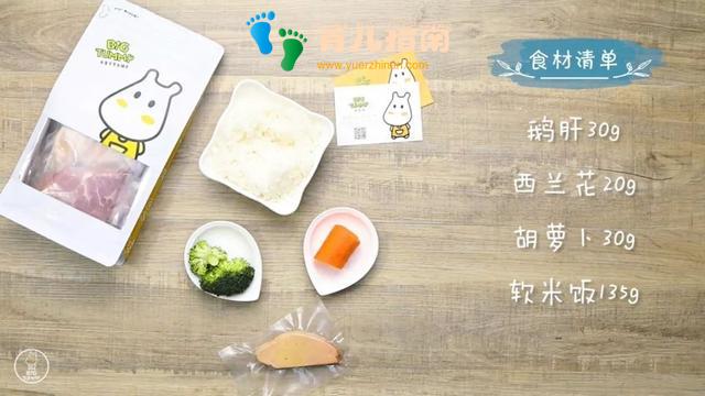 食材准备:Bigtummy鹅肝30g,西蓝花20g,胡萝卜30g,软米饭135g