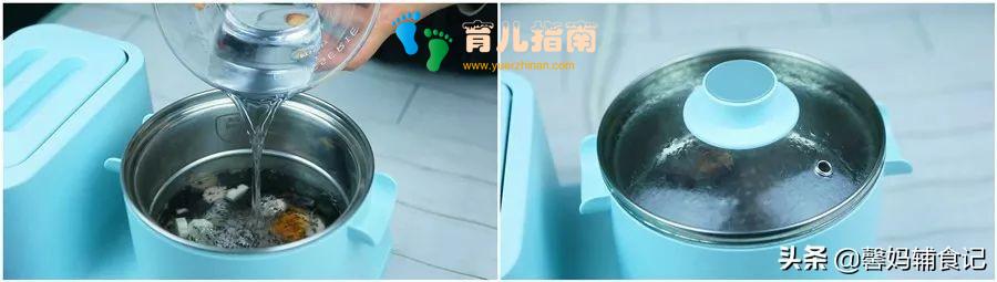 ▲步骤四:锅中倒入适量清水,水要一次性加足哦,然后盖上锅盖,开火煮