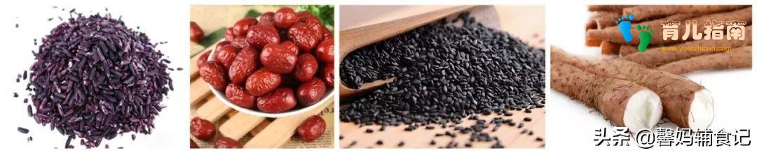 1、紫米:紫米含有蛋白质、B族维生素、钙、钾、铁、锌等营养元素,能促进机体细胞的新陈代谢,升级免疫系统,提高宝宝的抵抗能力,促进宝宝健康发育。而且紫米还含有大米所缺乏的维生素C、叶绿素、花青素、胡萝卜素,所以给宝宝适量吃些黑米还是非常有好处的哦!