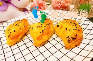 3、蛋挞皮放15分钟,一捏微软不破即可,然后和锡纸脱落,放入南瓜泥包严