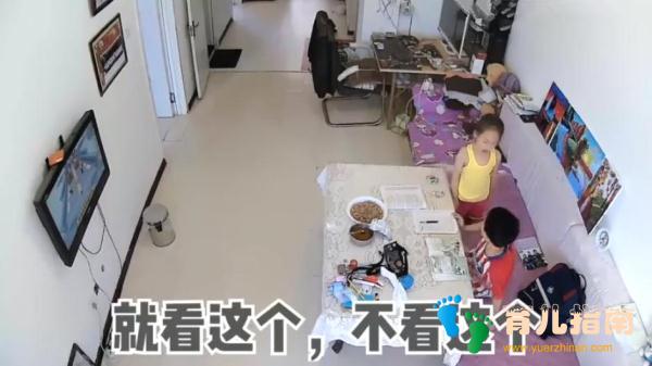 两兄妹又就这个动画好不好看争论了好几句,而且哥哥边说着还从前面轻轻推了妹妹一下,这下妹妹有点生气了。大声威胁哥哥说:你看着,我告诉爸爸你写作业的时候看电视!”哥哥也反击:那我以后再也不留一点东西给你了。”可是等妹妹去了一会厨房之后,情况就发生了变化。