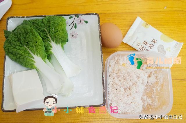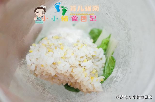 料理机内加入嫩豆腐50g 鸡蛋50g 熟肉末15g 青菜30g 油5g 米饭20g