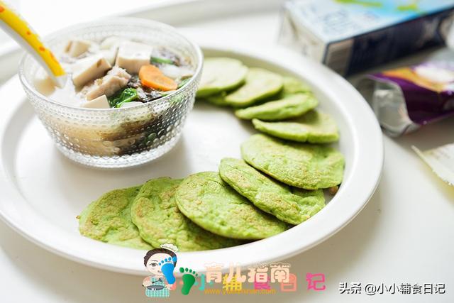 很多妈妈说自己的孩子不爱吃菜怎么办?八个月的孩子咀嚼力进一步增强,我们可以给孩子多做一些手指食物,如果他不爱吃菜就可以把菜一起做进去。绿油油的颜色也特别好看。