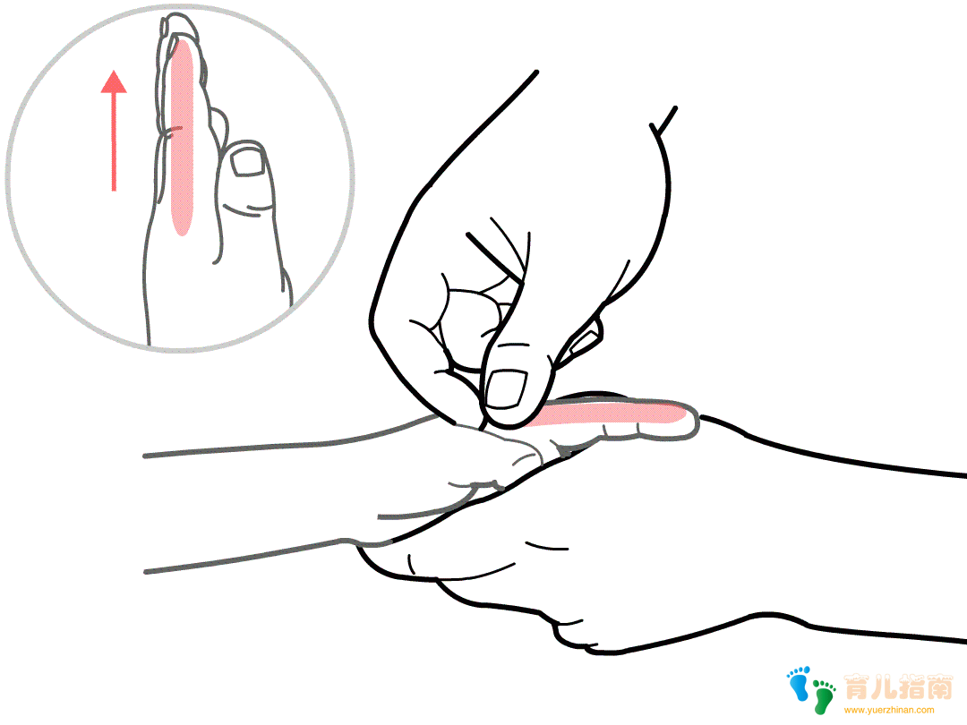操作:自掌根方向向拇指根直推为清,称清胃经。300次。