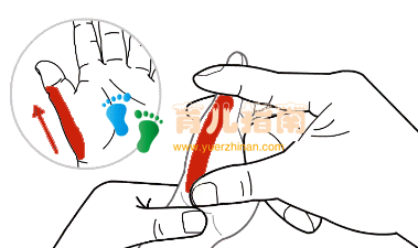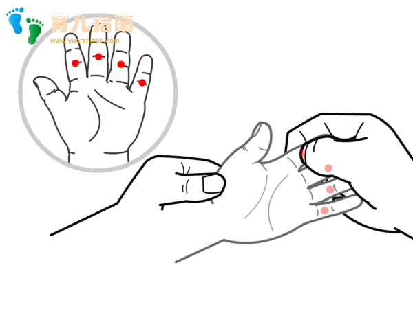操作:拇指甲掐揉,称掐四横纹,掐各5次。