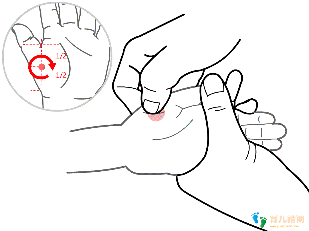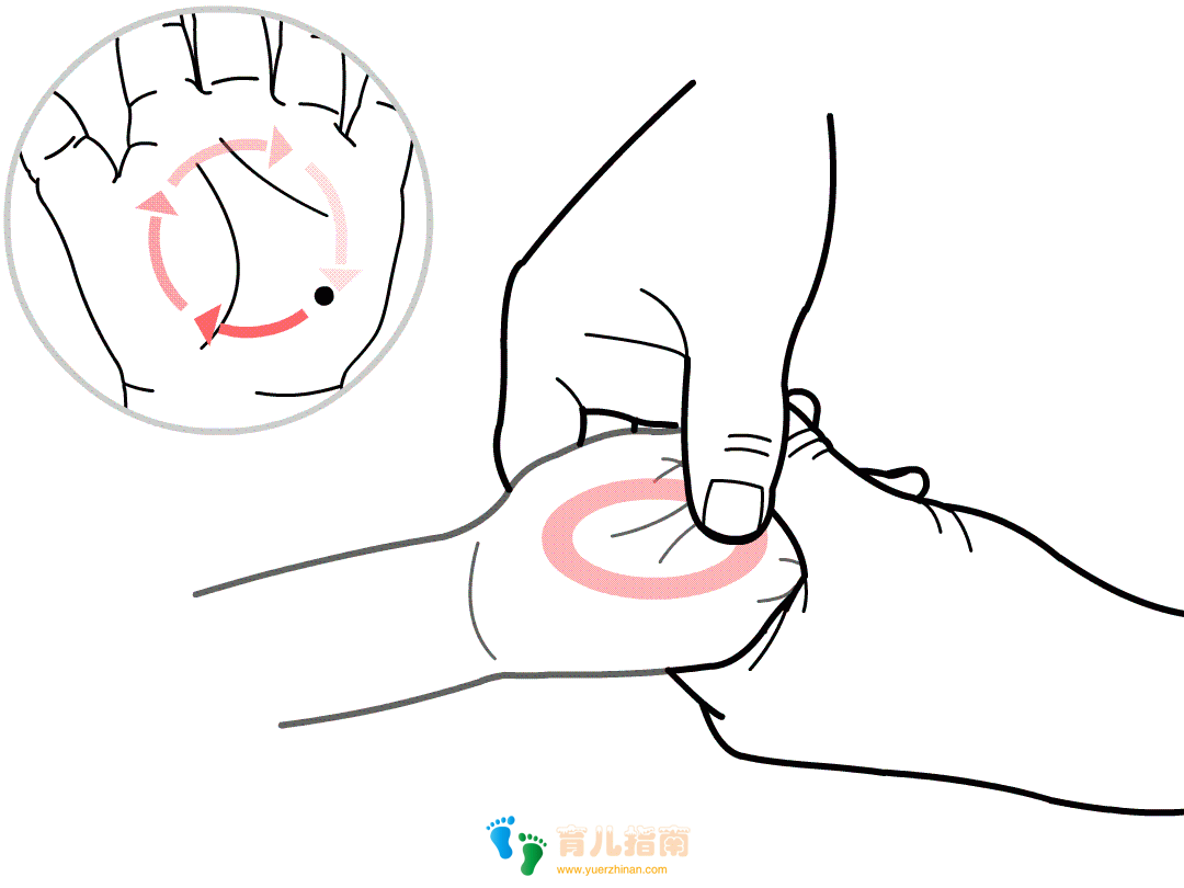 操作:用大拇指轻轻顺时针画圆。1~3分钟。
