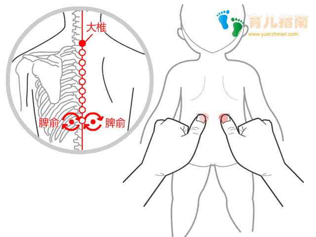 效果:按揉脾俞能健脾和胃、促进食物消化。主治孩子胃痛、呕吐、腹胀、肠鸣、积食等疾病。