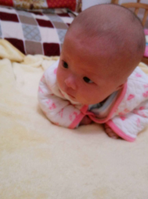 抬头。三个月的宝宝已经不是那个柔软的小人儿了,脖子和腰都有劲了很多,你会发现他即使平躺着,也要试着往起抬头呢,这是爸妈帮忙把宝宝翻过来,让宝宝趴在一个枕头上,宝宝的头能抬的高高的,左看右看,也许和平躺着看的视角不一样,比较新鲜,可爱极了。