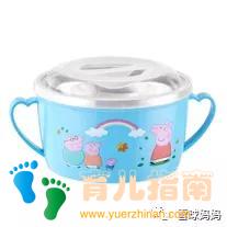 双耳碗方便孩子小手抓握,现在有升级版的注水保温双耳碗,也有吸盘碗,不过我个人觉得双耳的不锈钢碗可以用得比较久一点,而且可以早一点锻炼孩子的端碗能力。