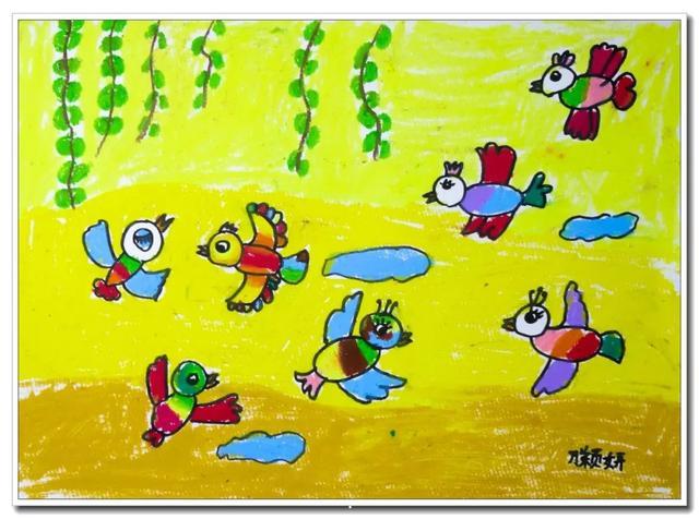 下面就与大家一起分享水南社区综合服务中心美术班小画家们是如何描绘《小鸟满天飞》