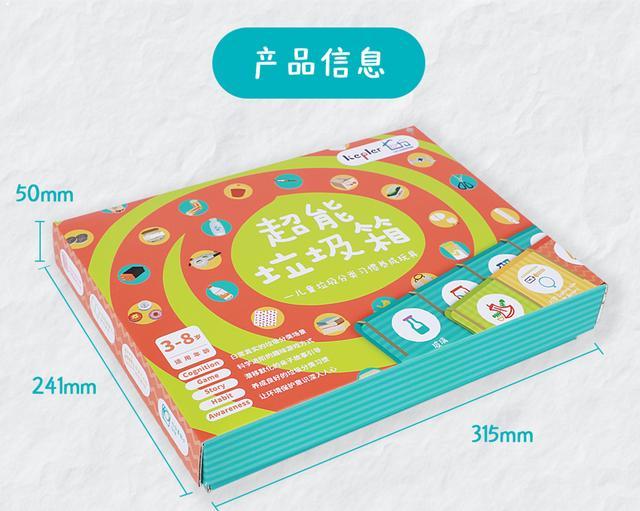 同群的妈妈见她这么说,给她甩了一个"超能垃圾箱"的图片过来。考虑到深圳的垃圾分类也山雨欲来了,我顺手点开看了看,一下子就被里面的色彩和设计吸引了,再细看内容和功能,说不出的喜欢。几十块钱的价格不算贵,我也给娃来了一个。