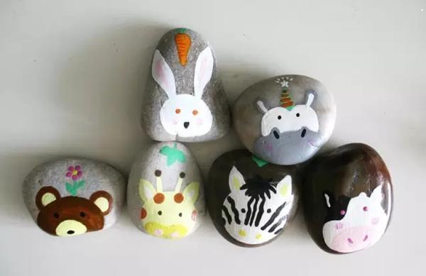 第二天上课的时候,老师把孩子们带来的石头认真分好类,并且教孩子们根据石头的形状积极联想符合什么样的形象,像一些造型圆滚滚的石头就可以用了画草莓或者是汉堡,扁平的石头可以用来画房子,很多石头个头都差不多,那孩子们就可以进行拼摆。在遇到孩子不会画的动物时,老师就带孩子们查阅资料,找出小动物的真实形象,再根据形象进行绘画。一节课下来,虽然孩子们进展比较慢,但也是收获多多。
