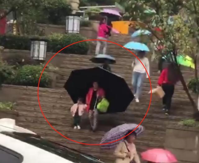 在下雨天,家长又要给孩子拿书包,又要牵好孩子,又要撑伞,如果在伞不是特别大的情况下,孩子很容易淋湿。