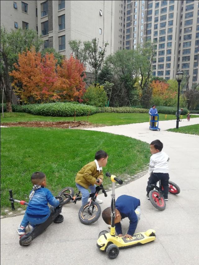 每天早上大概九点半左右,在我们院子的西北角,都会有五六个熟悉的小身影,骑着平衡车穿梭在大路小道上。我们大人们跟在后边跑,怕宝宝们摔了或碰了。小家伙们累了,一个带头坐地上,肯定是全部倒下。休息时,一个吃吃零食,那也会是集体行动……