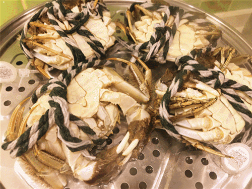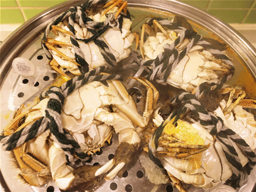 蒸多长时间呢?一般蒸10~15分钟为宜,蒸好后,关火,这时不要急着把螃蟹捞出来,让它在蒸锅里焖个2~3分钟最好。