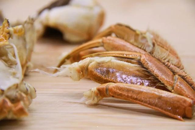首先剪掉螃蟹腿,蟹腿放凉后其中的肉会自动与蟹壳分开,更容易被捅出甚至是被吸出,因此要留待最后来吃;
