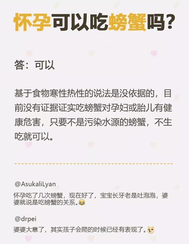 其实呢,正如裴医生所说,孕妇是可以吃螃蟹的。但为什么可以吃?吃多少?怎么吃?这些也并非全无讲究。